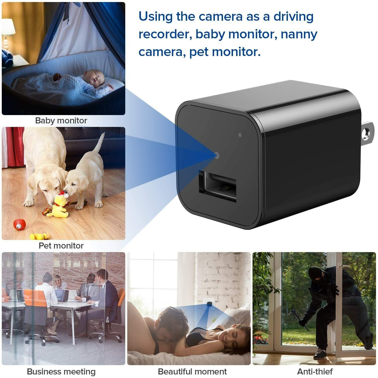 2.Motion Detection Function for Home & Office Security: This powerful USB wall charger camera adapter records in Full 1080P HD video when the slightest movement is detected for reliable, automatic use.