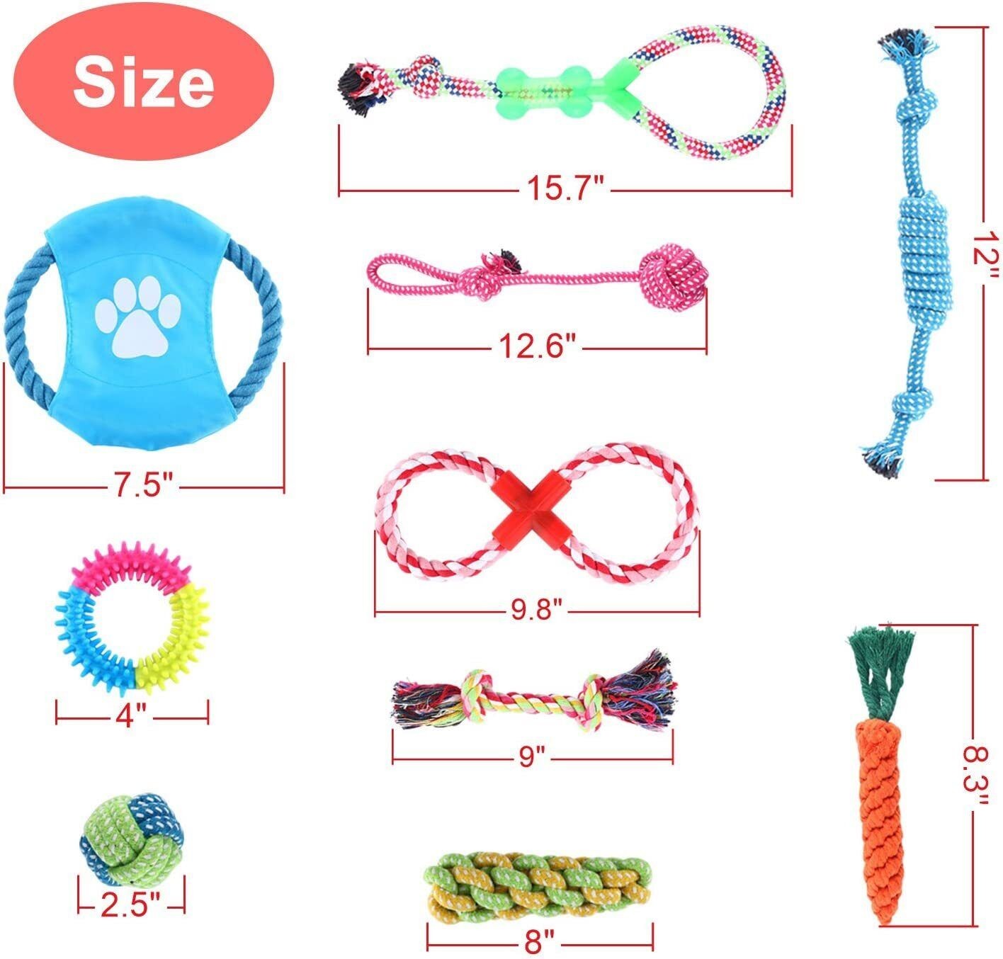 10Pack Dog Toys Braided Rope Durable for Aggressive Chewer Interactive Rope Toys