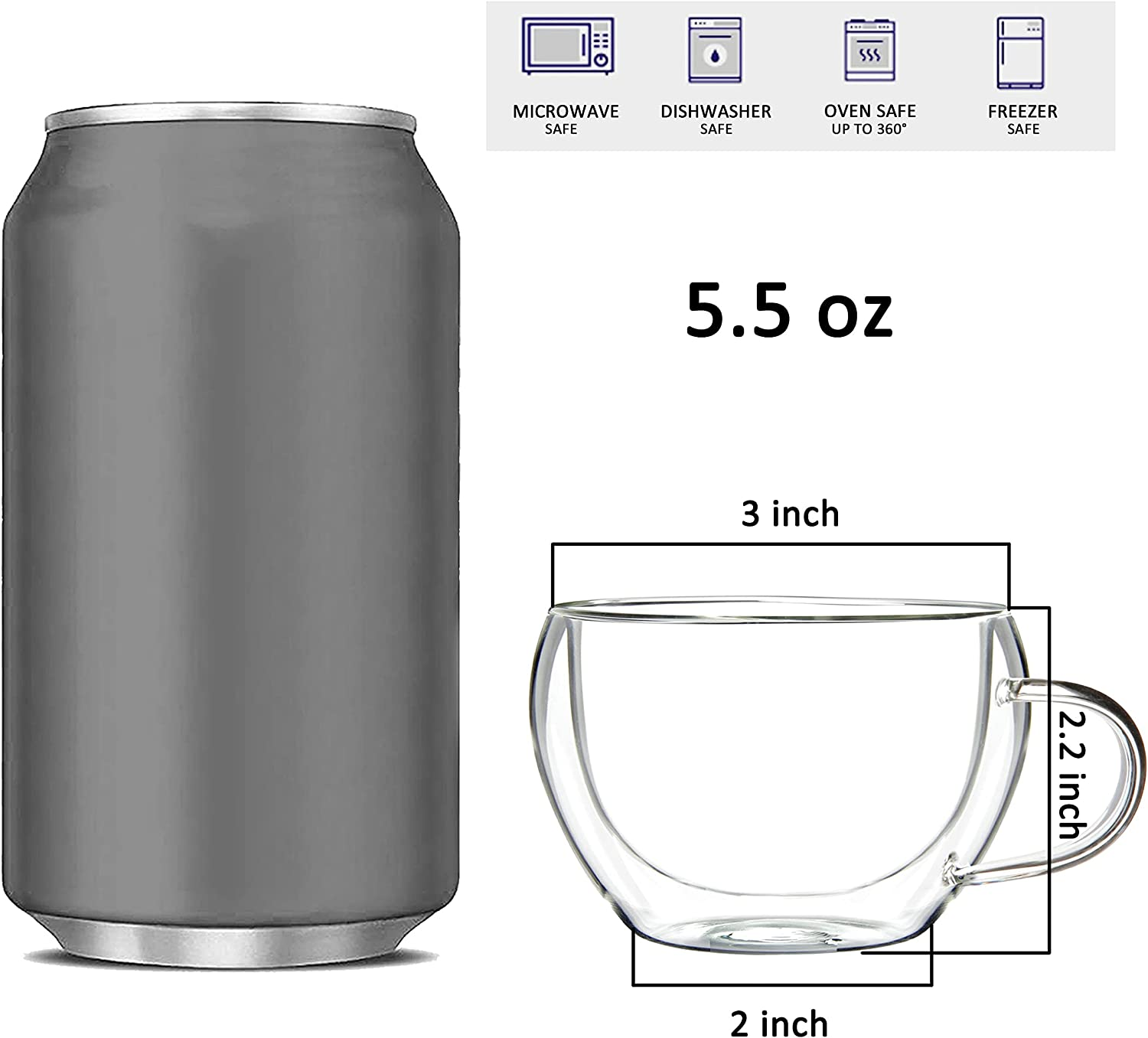 2 Pack Glass Espresso Mugs, Double Wall Thermo Insulated Glass Coffee Cups, Glas