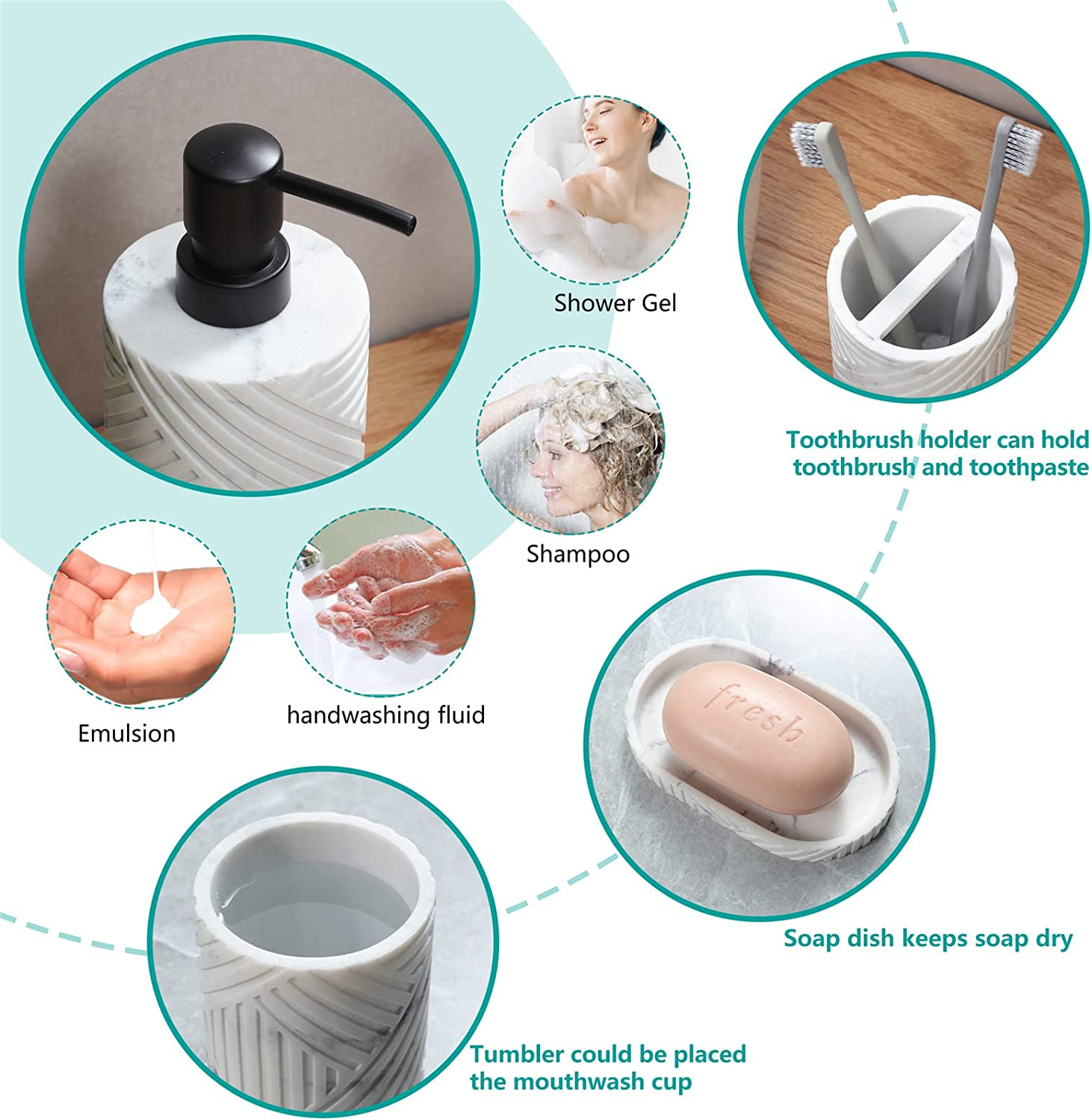 Tumbler, Toothbrush Holder, Soap Dispenser, Soap Dish