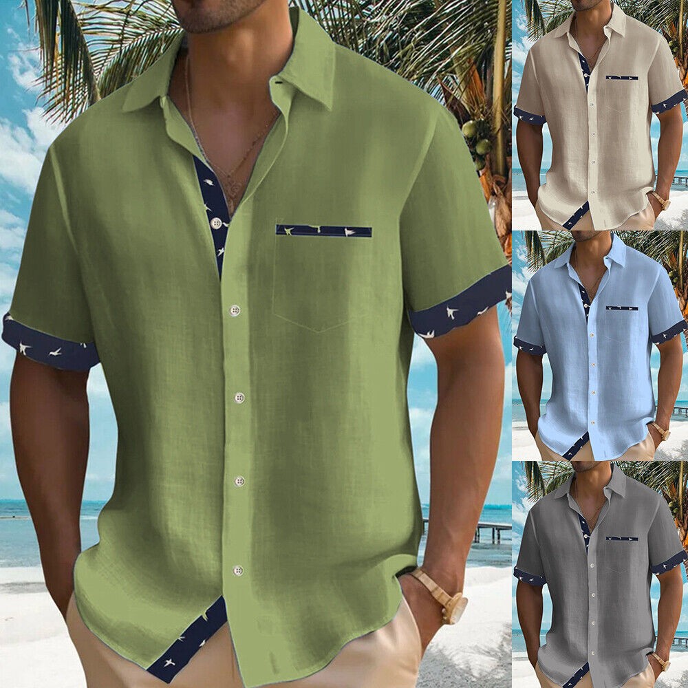 Blouse Button-down Shirt Tops Tunic Casual Pocket Color Block Short Sleeve Loose