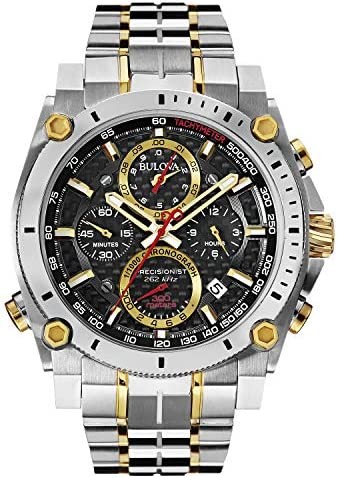 Bulova Men's Icon High Precision Quartz Chronograph Watch, Curved Mineral Crystal, 300m Water Resistant, Continous Sweeping Secondhand, Luminous Markers