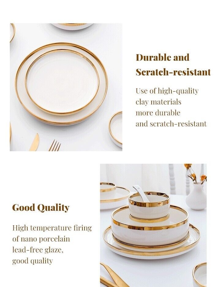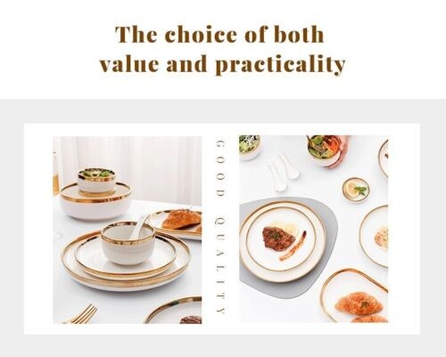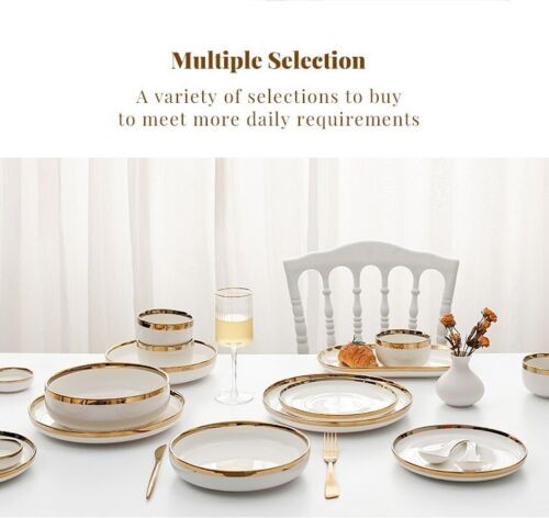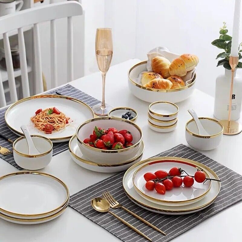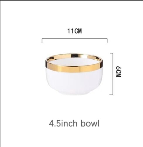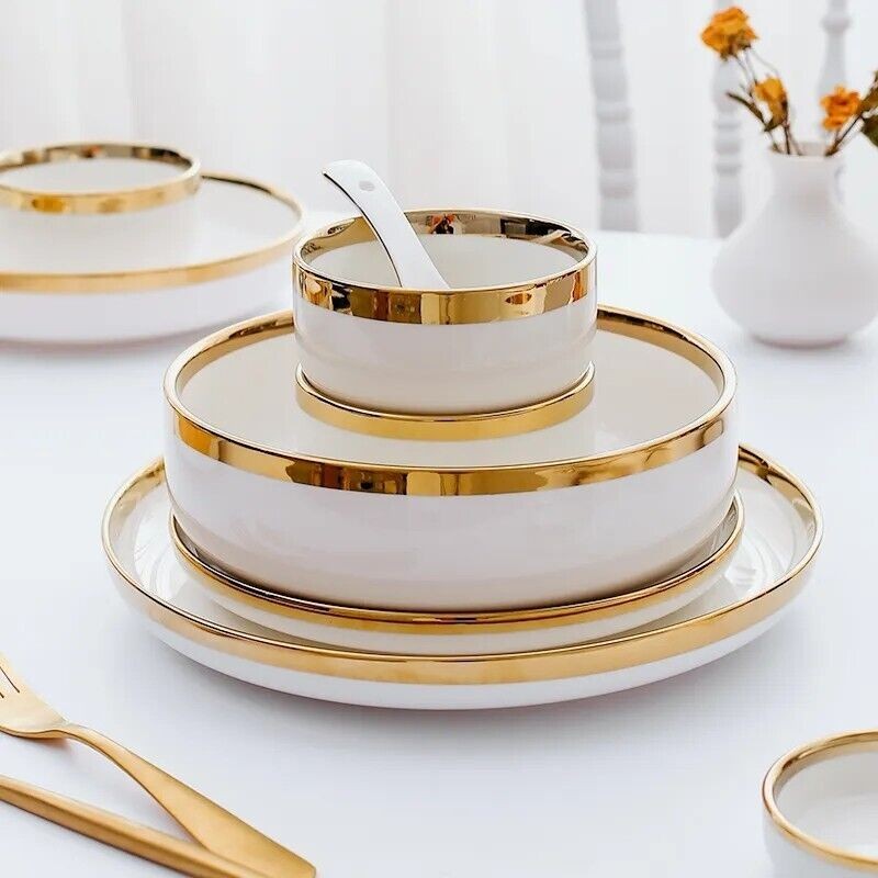 Ceramic Tableware Dinner Set Round White Color With Gold Rim Plates For 1 Person