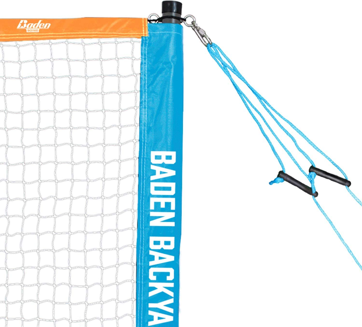 Net, poles, guylines, volleyball, badminton racquets, shuttlecock
