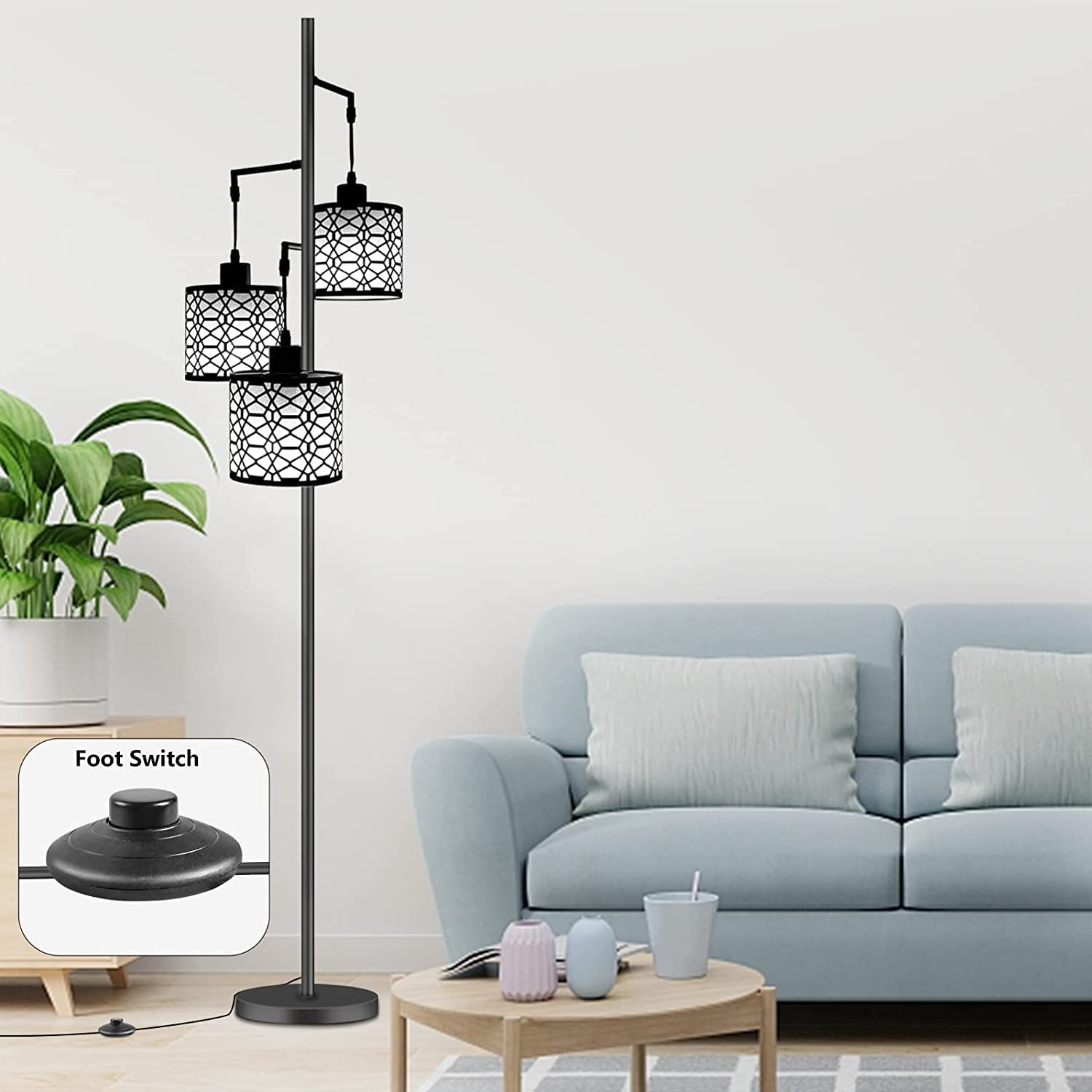 Dimmable Industrial Floor Lamp with 3-Lights Black Farmhouse Floor Lamps for Liv