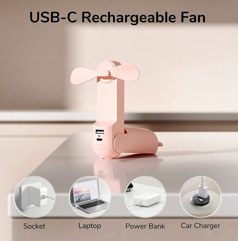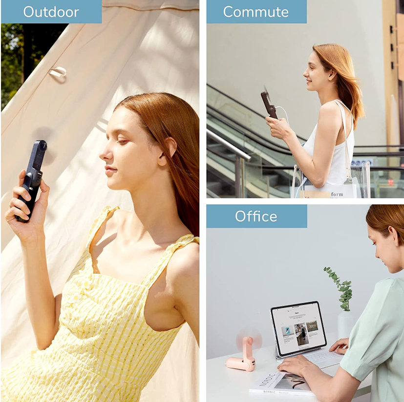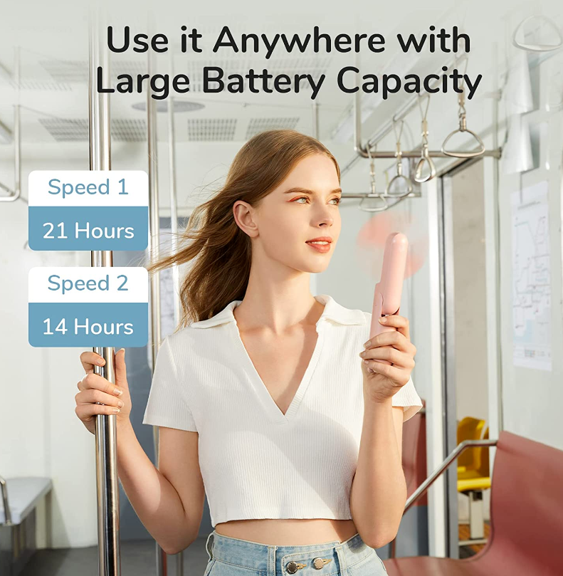 • 【14-21 Hours Cooling Time】Up to 21 hours cooling time in one full charge. Super long battery life allows you to enjoy it while travelling, commuting, working and any other outdoor activities. This mini handheld fan is USB rechargeable through regular usb socket, laptop, power bank or car charger.
