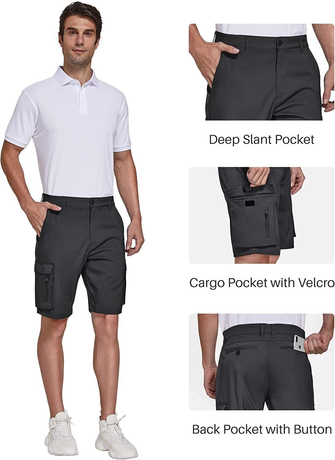 Men's Cargo Shorts Stretch Lightweight Quick Dry Multi Pockets Hiking Half Pants