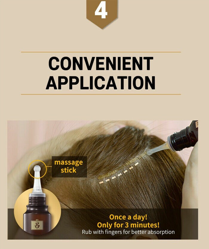 This two-month usage Ampoule is formulated with 84% high concentration of herbal ingredients such as whole Korean Ginseng, Lingzhi, Wilfordi Root and Ginger to reduce hair fall & strengthen weakened scalp & hair.