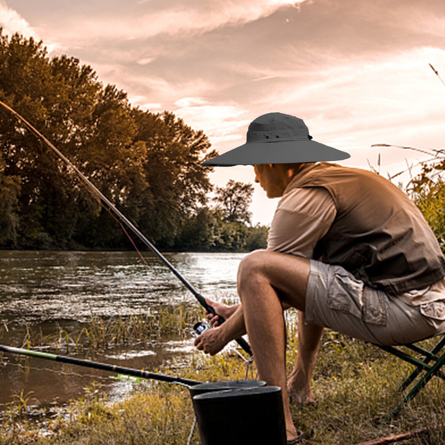 Super Wide Brim Bucket Hat UPF50+ Waterproof Sun Hat for Fishing Hiking Camping