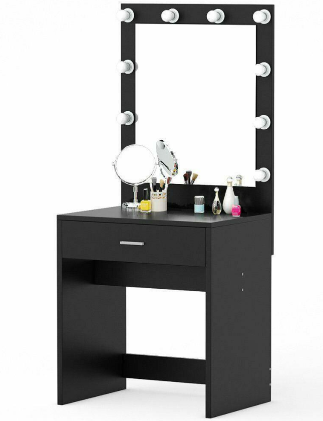 10 LED Lighted Vanity Table Set with Huge Mirror and Drawer Makeup Desk- ★sleek and simply, contributes both fashion and practicality to your bedroom or changing area