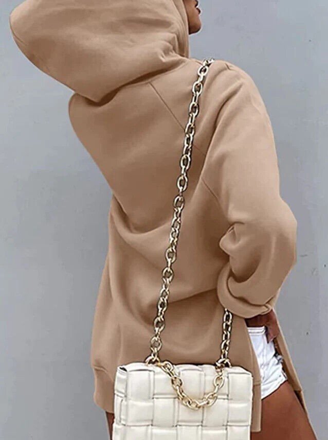 Womens Fleece Hooded Ladies Long Sleeve Zip Up Sweatshirt Pockets Jacket Dress